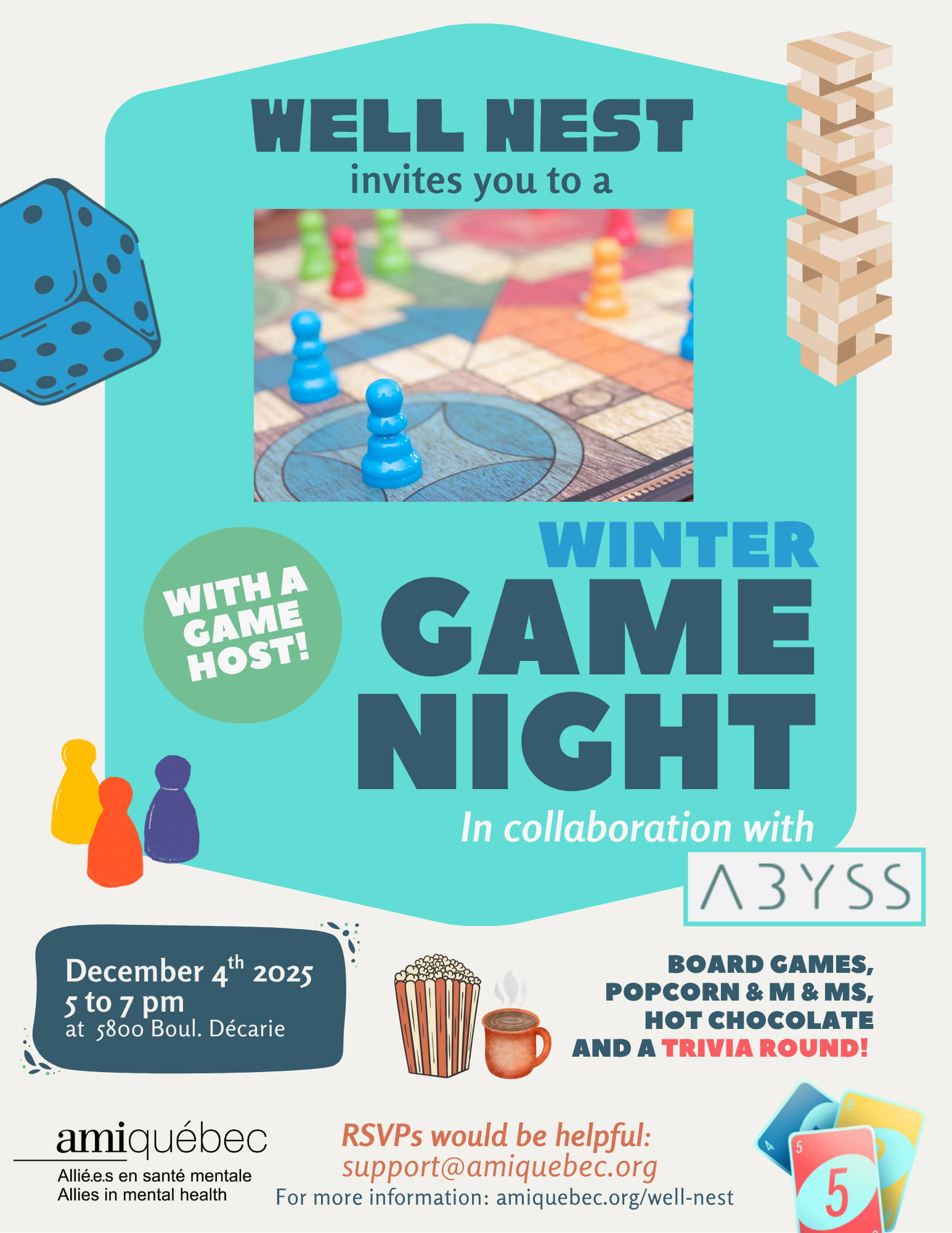 If you would like a few reminders leading up to Well Nest events, please email support@amiquebec.org, and we will be sure to send some your way.